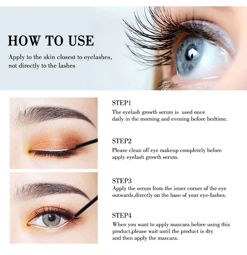 👉EASY to APPLY: Simply place a thin line along the base of your upper and lower lash line once a day at nighttime. Apply only at the root area of eyelashes and as though applying eyeliner.